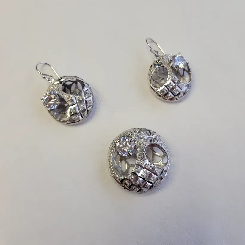 Conjunto de Plata con Piedras PC2300 Peso: 3.5g Aros y Dije